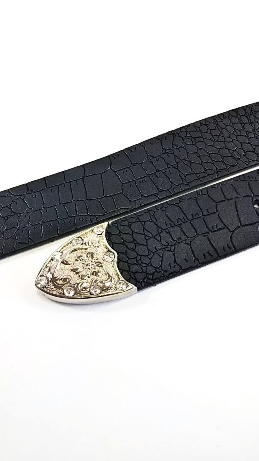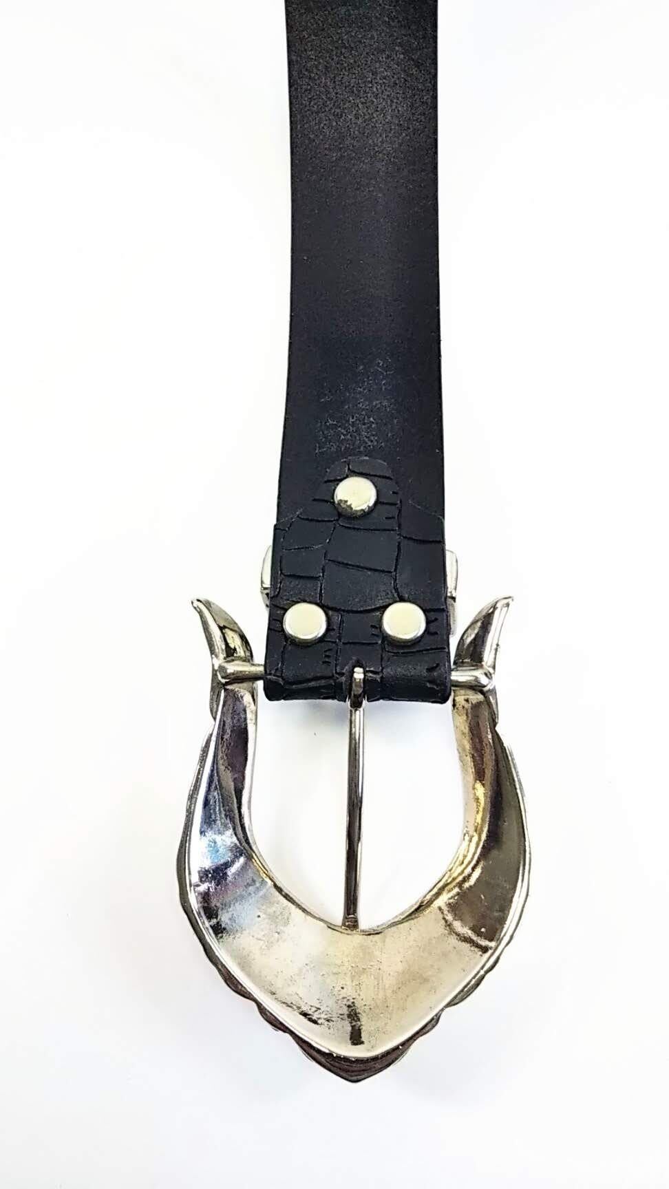 重厚感有るゴシック調バックルにワニ型押しが個性的で他に類の無いインパクトが有る1品かと思います